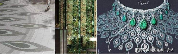 祖母绿切面工艺铺装、蓝宝石水景、琥珀质感格栅……宝石灵感贯穿景观细节,香槟金“飘带”外立面与蝴蝶状曲线建筑群,在晨昏光影中与黄浦江波光共舞。