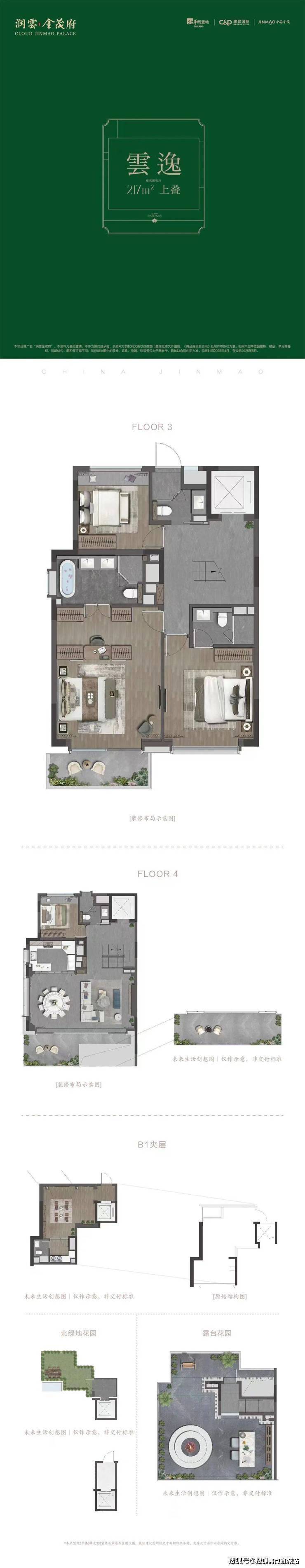 叠加别墅:建面约170㎡、190㎡、200㎡、217㎡四居室