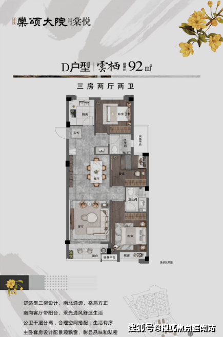 六层洋房92户,新中式合院(190-270㎡)41户。