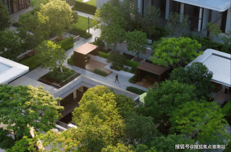 而万科和中国铁建也没有浪费这来之不易的自然水系天赋,项目以曼谷湄南河四季酒店为蓝本,打造了社区内的“入口仪式庭院、静心庭院、水榭林间、童玩乐园、滨水庭院、微风草坪、Mini植物园”等核心景观模块。