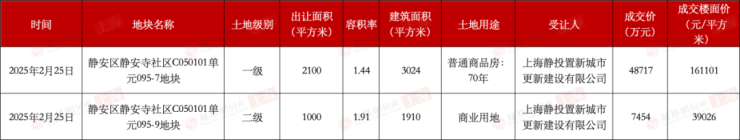 上海地价记录又被刷新了。2月25日,位于静安区静安寺附近的两宗地块成功地以协议方式出让,成交总价5.62亿元,竞得人为隶属于静安国资委的上海静投置新城市更新建设有限公司。