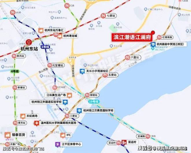 再看潮语江澜自身配套,项目与地铁9号线红普南路站相距仅约200米,真正实现“出门即地铁”,咫尺江河汇,加上钱塘快速路、之江东路隧道等,快速联通全城。