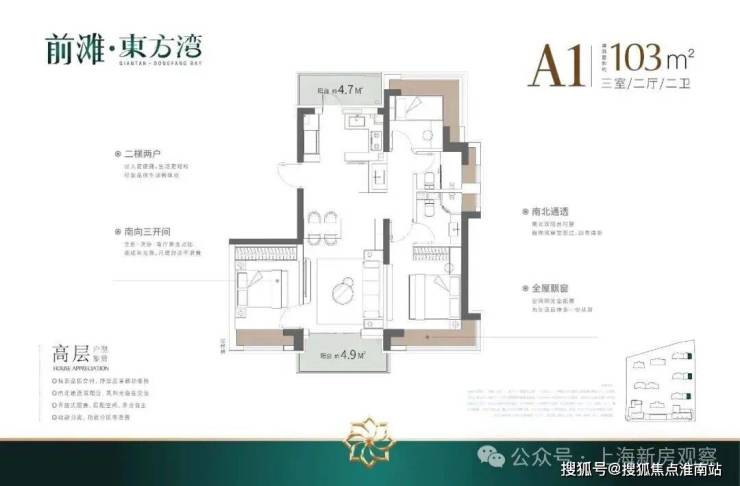 浦东三林「前滩·东方湾」少量建面约103-120㎡3房,均价8.38万/㎡!