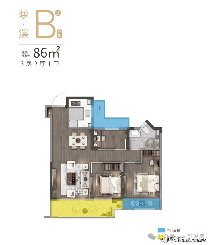 【梦溪B户型 】‼️建筑面积约86㎡‼️