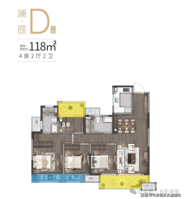 【澜庭D户型 】‼️建筑面积约118㎡‼️