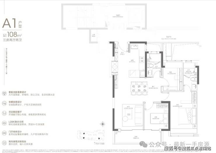 108㎡的入门级三房,起步门槛相比润府提高不少。