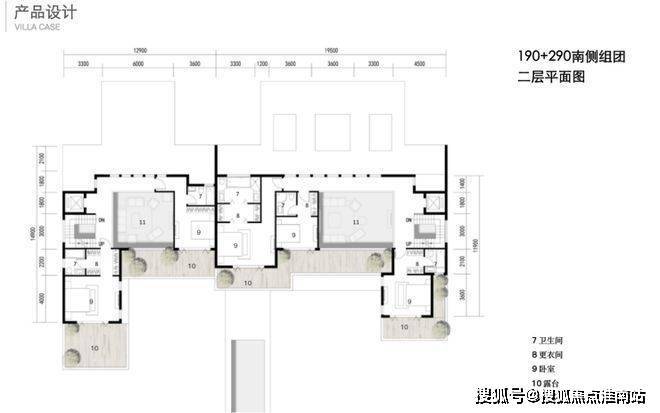 二层都是套房设计+露台+客厅挑空,190的二层是双套房、290的二层是三套房。