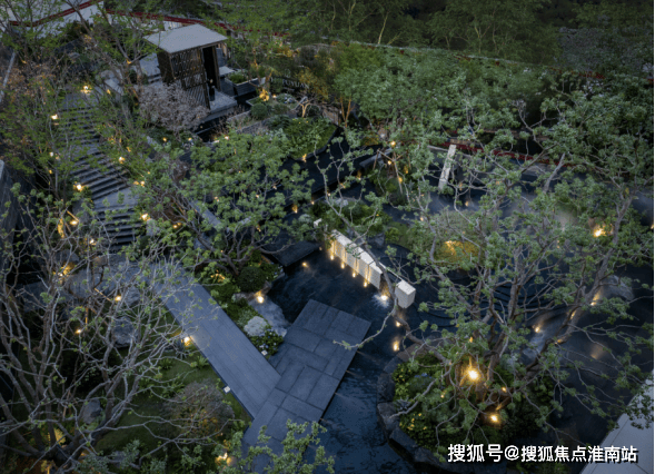同时百年冬青撑开7.5米的华盖,186块乌金原石从太行山平移至此,银河流金奢石铺就的星河在水盘池底闪烁,仿佛将整片银河都收纳其中。