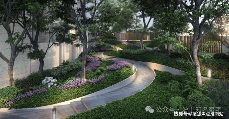 通过多级抬高的坡地,堆坡造园,呈现类似旧金山九曲花街的观感,每一段起伏都是精心设计的场景体验!