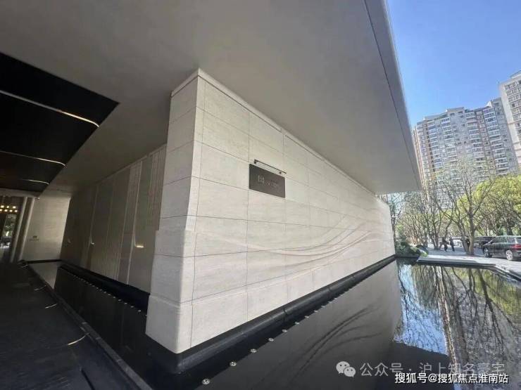稍微走近一点, 就能看到采用了大量的弧形元素和石材材料! 石材的质感本身就厚重,在上面叠加类似海浪的线条弱化了厚重感,反而显得轻盈!