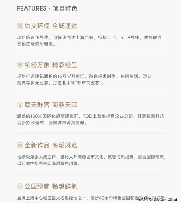 以一座复合型综合体大城,万象系商业、海派精奢住区、超高层办公塔楼无界汇集,实现“生产+生活+生态”的“三生”融合,将未来公园城市植入其中,建设站城人一体的TOD复合生活场,指向未来的造城实践。将“交通、商业、公园、办公、居住”五大业态一体化集成,引领北中环复合综合体生活方式。