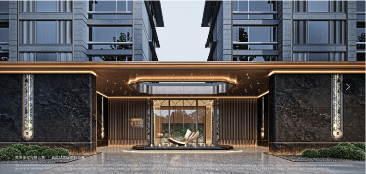 一进·御庭迎宾:灵感取自中式水墨画,大气门庭,宽檐庄重,巧用精致奢石,辅以古铜色金属鎏辉,诉说当代门第雅贵。
