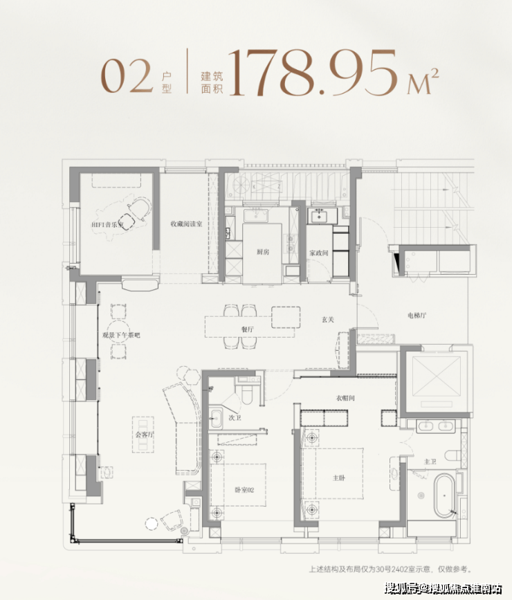 以建面约179㎡的边套为例,并未将北房间局限为常规卧室,而是灵活打造为HIFI音乐室与收藏阅读室,既可作为业主的灵感工作室,也能成为孩子的兴趣天地;