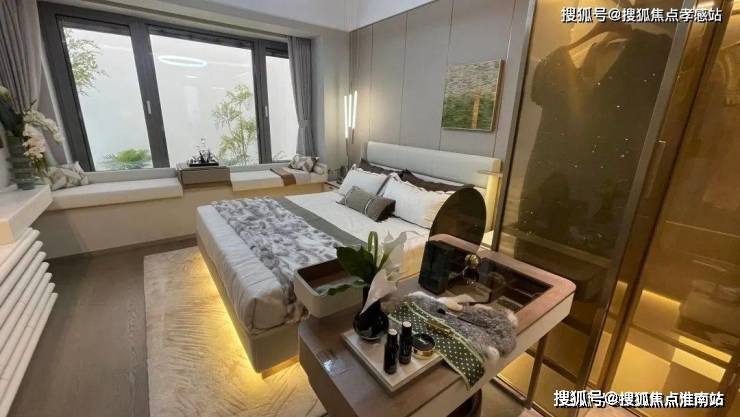 主卧豪华套房,预留衣帽间空间,配备独立卫浴,且配置双台盆+大浴缸,以五星级酒店式的卫浴配置,演绎居家生活的奢享;主卧打造南向大飘窗,配合以转角采光窗,呈现未来轻办公与午后茶饮的最佳空间。