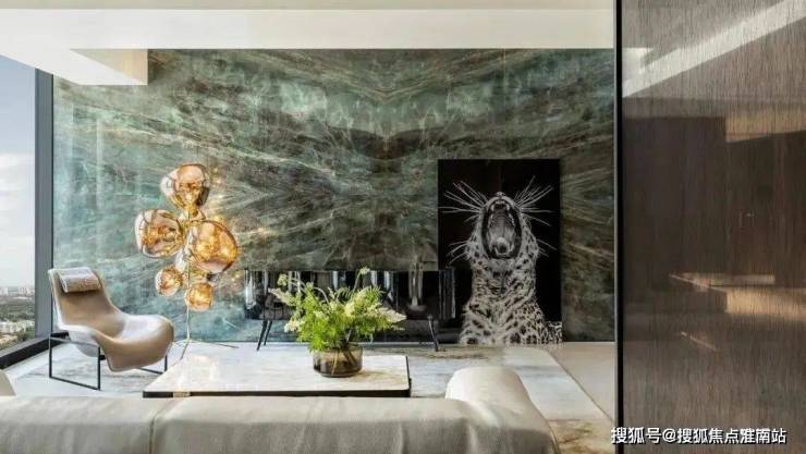 翡翠绿,这一独特的色彩选择,不仅呼应了主题,更巧妙地勾勒出了森林的特征.在这片绿色的海洋中,仿佛可以听到树叶的沙沙声,感受到微风吹过树梢的轻柔.整个客厅的空间被赋予了生命的气息,仿佛置身于一个动感的森林生态之中.