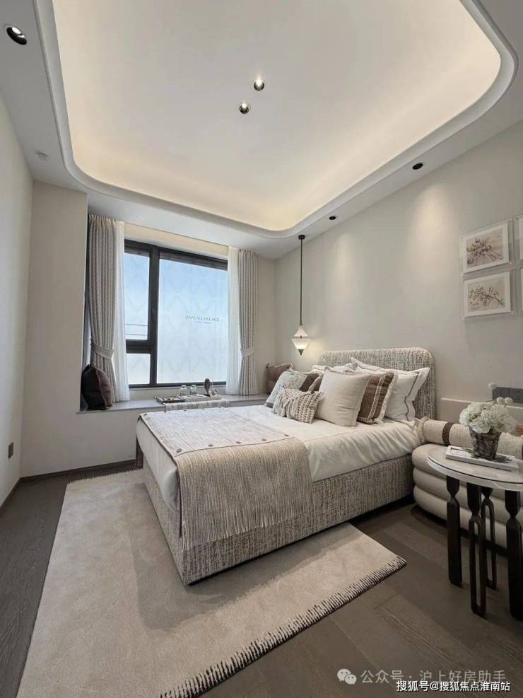 悬浮式弧形吊顶像给天花板开了美颜滤镜,配合无主灯设计,光线柔和分布,给予视觉与心理的舒适体验。