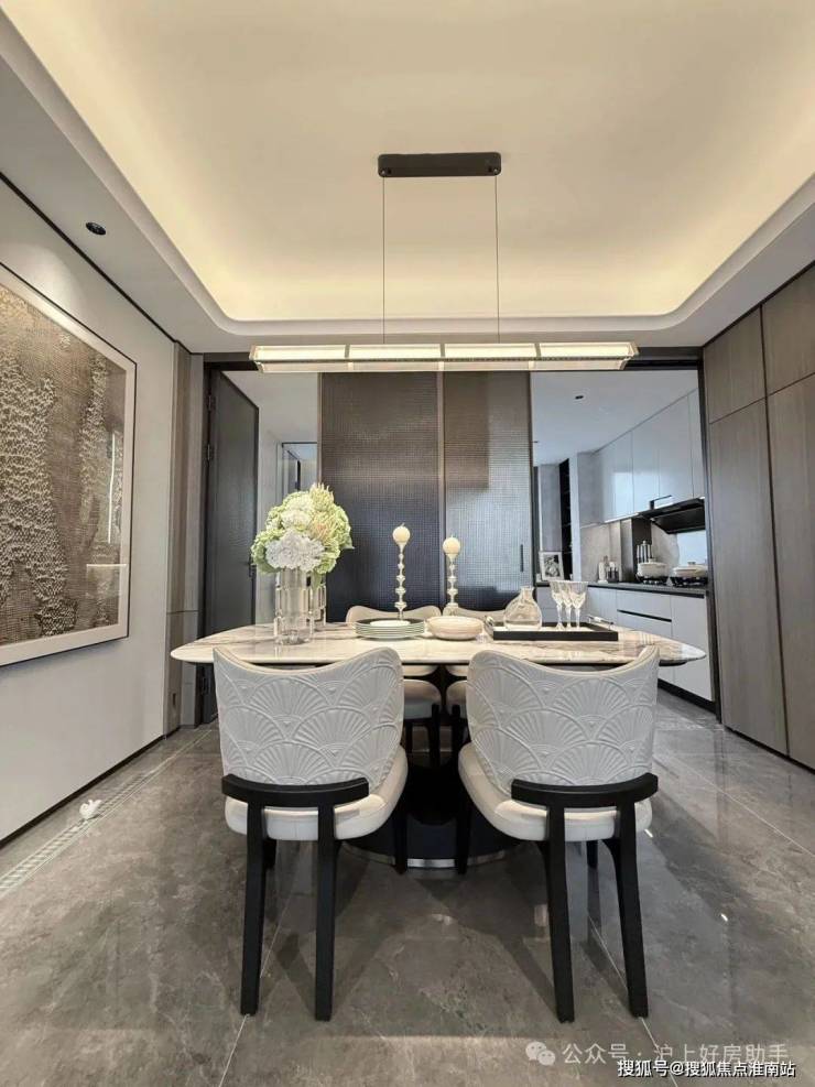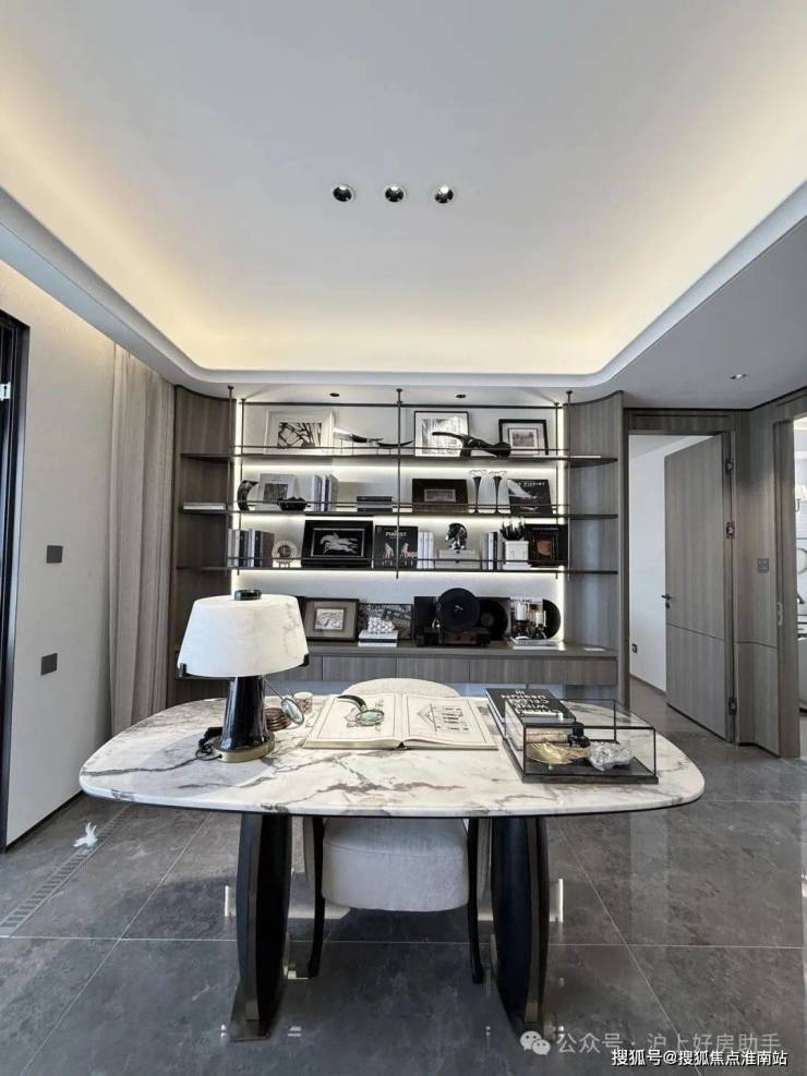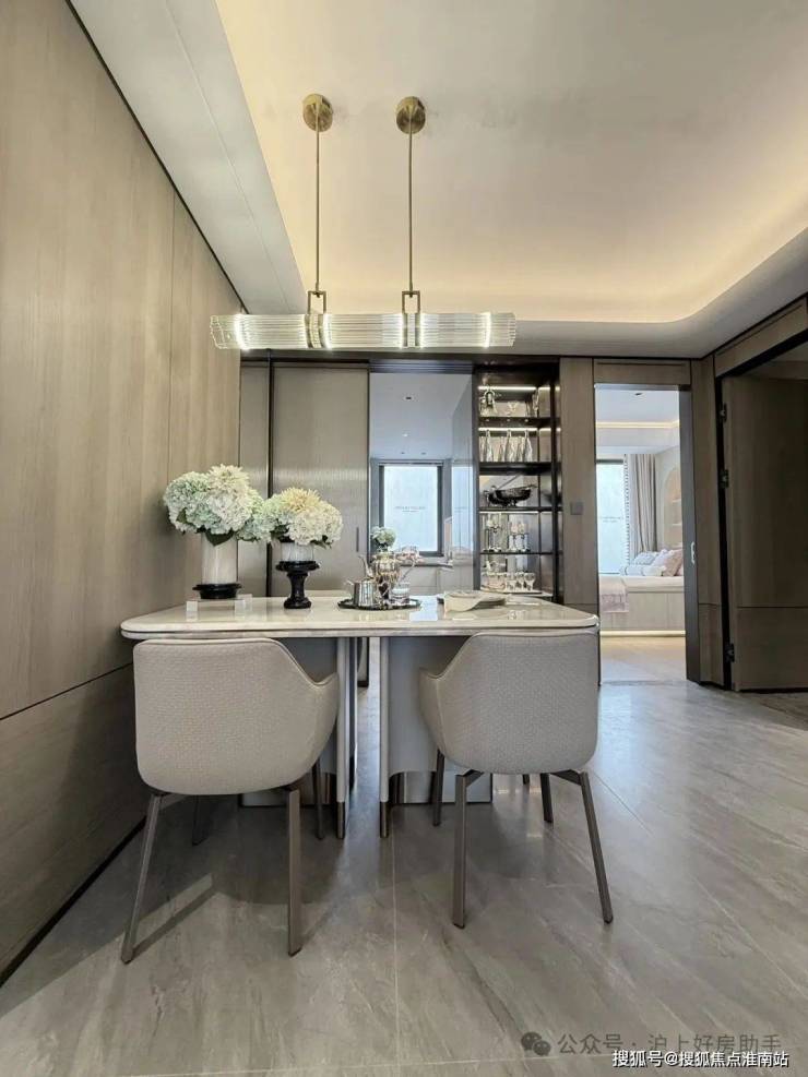 「江湾金茂府」在选材与工艺上尽显奢华,皮革、金属、木材与灯光丝滑连接,形成高度统一的整体。