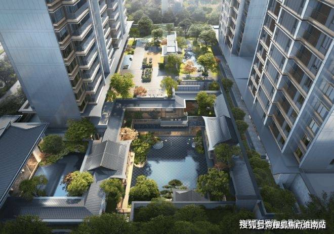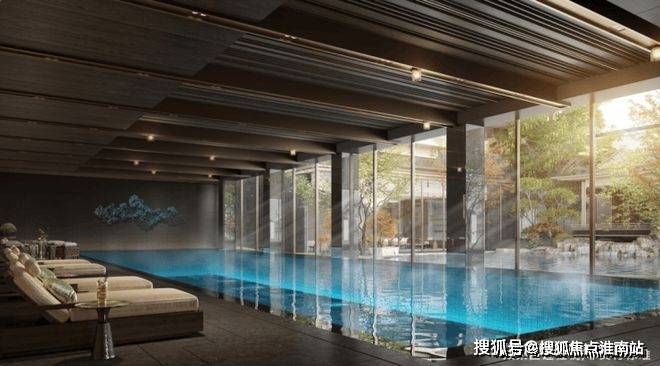 园林设计:三进院落融合西湖十景意境,采用蓝翡翠奢石景墙与百年古树造景,下沉式会所含恒温泳池。