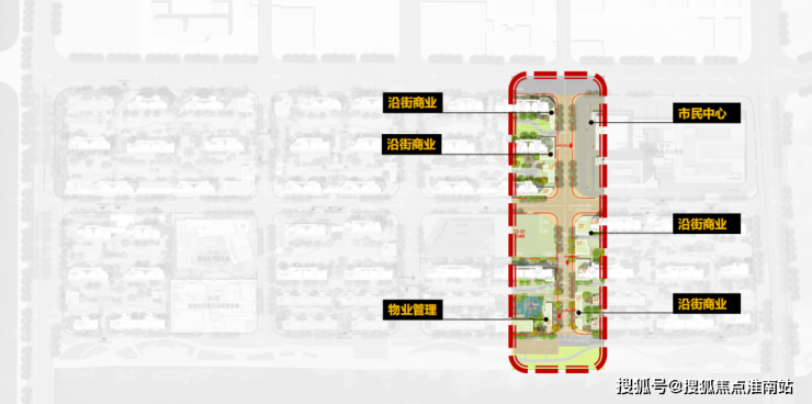 商业街:沿恭礼路设置商业店铺,创造形式丰富多样的时尚街区, 形成充满烟火气息的城市街道。
