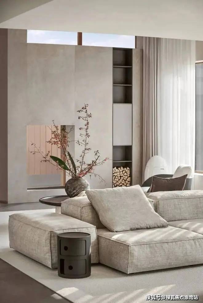 ▲3+2组合的布艺沙发,搭配上异形大理石台面的茶几组合,大面积的落地在引入采光的同时,也让窗边的绿植、外景进入到室内空间在,增加居家空间的自然惬意氛围。