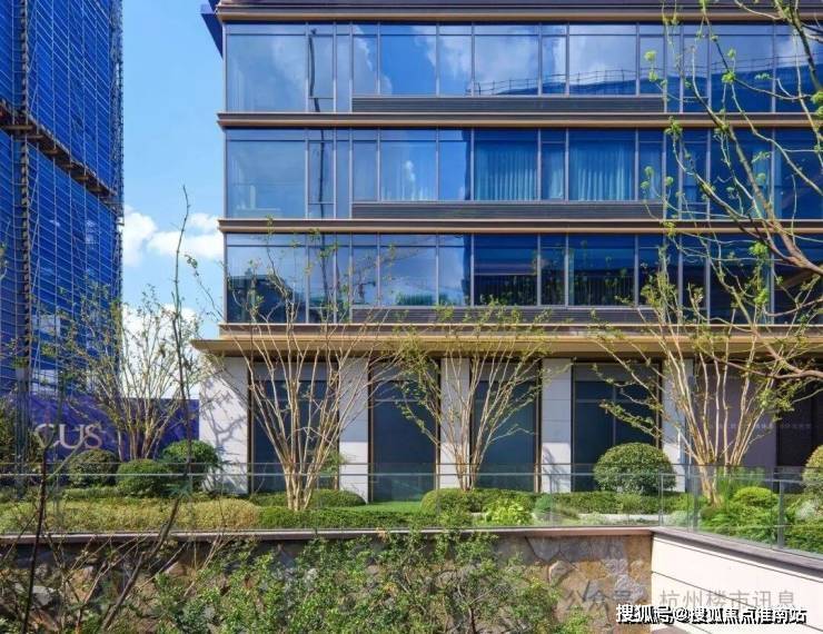 四面铝板 + 蓝灰色玻璃:延续奥邸国际立面质感,大面积干挂香槟金铝板与灰色铝板组合,南面大面积玻璃勾勒现代艺术感流线立面,叠墅石材干挂➕铝板外立面