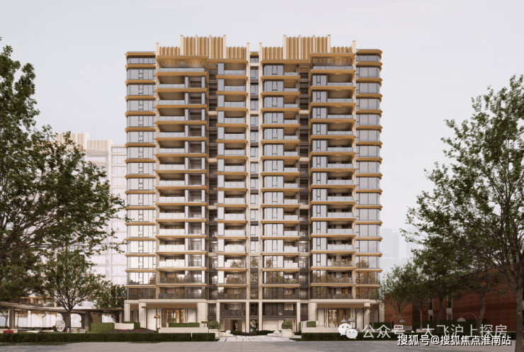 此次住宅项目外立面采用浅色石材、香槟金铝板与LOW-E玻璃的组合,实现四面立面的美学统一。