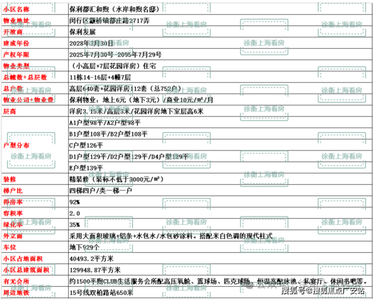📊 保利都汇和煦(闵行・颛桥|水岸和煦名邸)核心概况