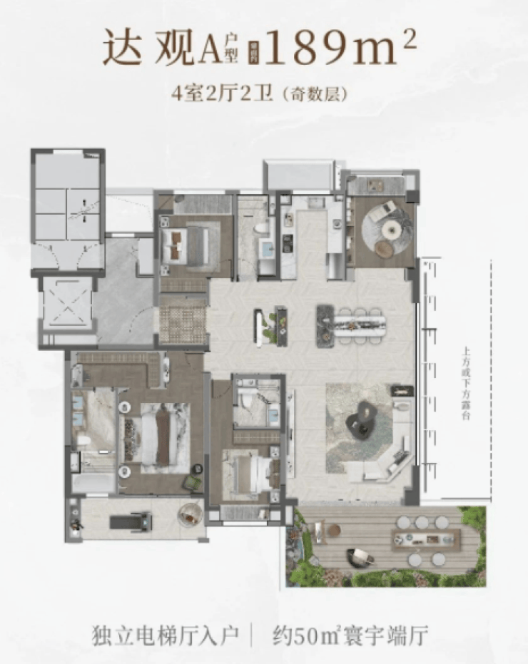 上叠:私享入户花园 + 独立电梯 + 大露台