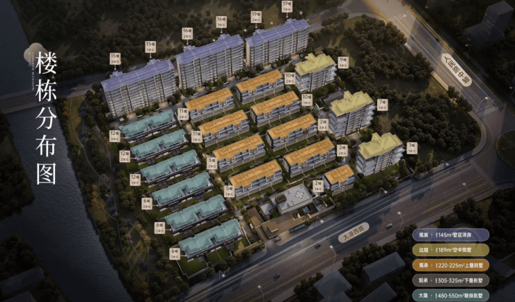 建筑类型:联排别墅 + 叠加别墅 + 洋房(含第四代空中院墅)