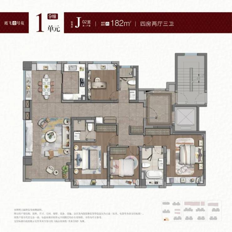 - 建面约182-188㎡ 四房:单价约8.5-8.9万/㎡,总价区间1547-1673万,核心亮点为7.8米超大横厅、中西双厨、独立家政电梯