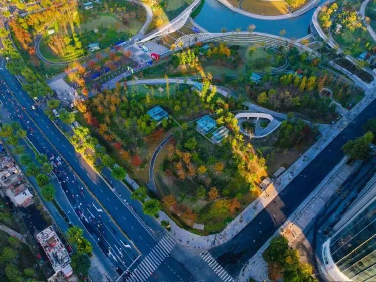 已建成约50万方的中央绿地作为桃浦区域转型升级的重要载体,在景观打造上借鉴了伦敦海德公园、纽约中央公园规划设计理念。建成后将成为中心城区最大的开放式公共绿地。