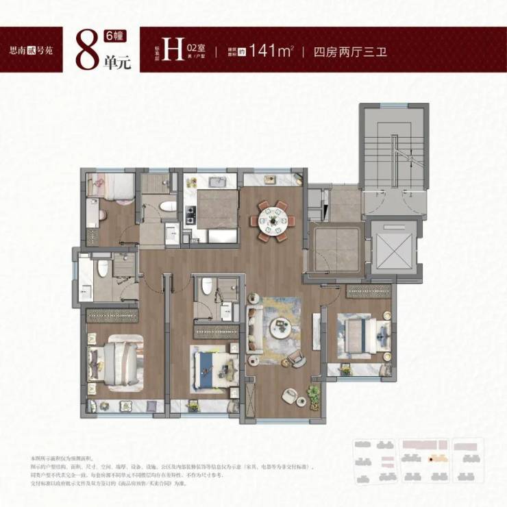 约188㎡四房:作为项目的 “旗舰户型”,188㎡四房三卫采用十字中轴动线,三卧朝南 + 双套房设计,满足多代家庭对隐私与阳光的双重需求。