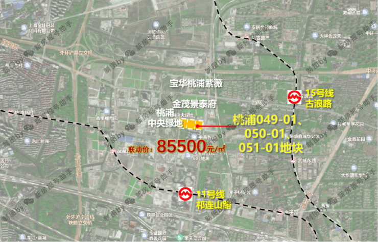 2023年8月,上海二批次土拍,宝华&东苑以总价328800万元成交普陀区桃浦科技智慧城(W06-1401单元)049-01、050-01、051-01地块,地块出让面积30126.9㎡,容积率2.5,溢价率4.05%,楼板价43655元/㎡,房地联动价85500元/㎡。