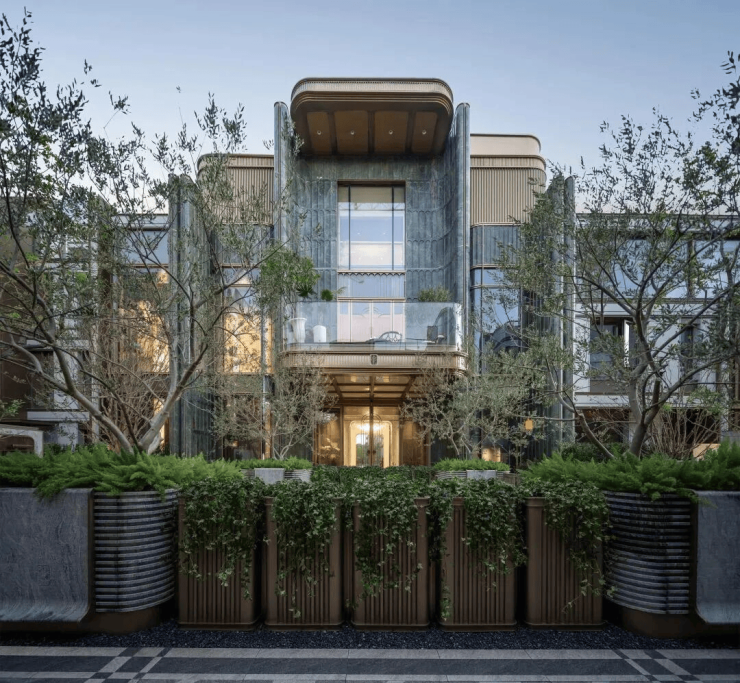立面上,项目不惜成本,甄选巴西进口亚马逊绿奢石,这种TOP级天然石材,以深邃的纹理与温润的质感,在现代立面上复刻了老绿房子的灵魂,却更显当代奢华气度