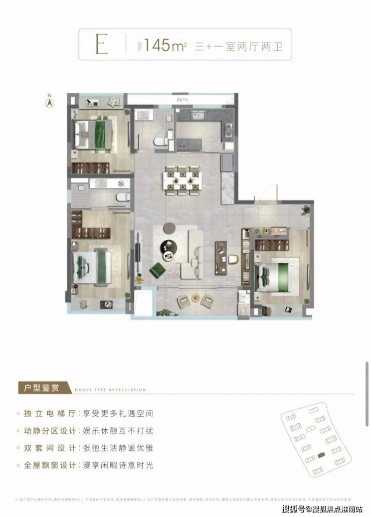 根据出让合同显示,项目容积率为2.0,限高50米,住宅套数下限905套,需配建5%以上的保障性住房,全装修比例为100%,要求地块内中小套户型不得低于总住宅建筑面积的80%!