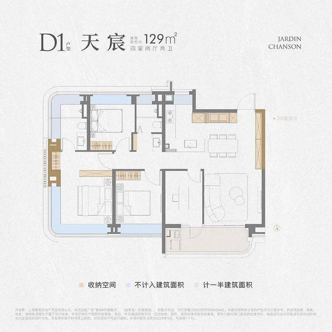 延续了3S墙和双270°全景双舱的亮点,尺度感进一步提升。南向四开间保证了更充沛的阳光,客餐厅与超大尺度阳台贯穿南北,进门视野无遮挡,大宅气度油然而生。