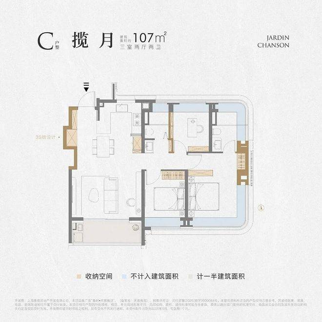 建面约107㎡的户型则刷新了我们对百平三房的认知