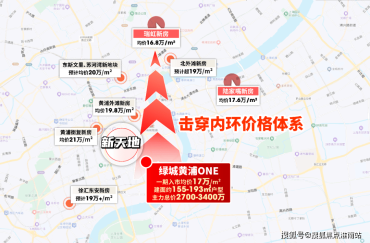 虹口在售新房单价已达16.8万/㎡,绿城地王预期更是19万+/㎡;