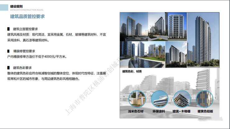 在2022年第二批土拍名单亮相之前,桃浦智创城规划展示馆路演中心,就举办了一场土地推介会,当时就公布了地块对于住宅建筑立面管控标准和展现精品化住宅定位的要求。