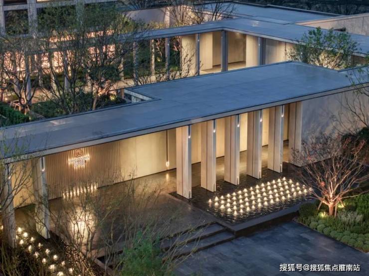 项目以高端酒店式落客区为灵感,精心打造尊崇归家动线。车马院落客区与66米恢弘社区入口形成通透的视觉通廊,通过材质对比与空间收放,构建出张弛有度的礼仪界面。