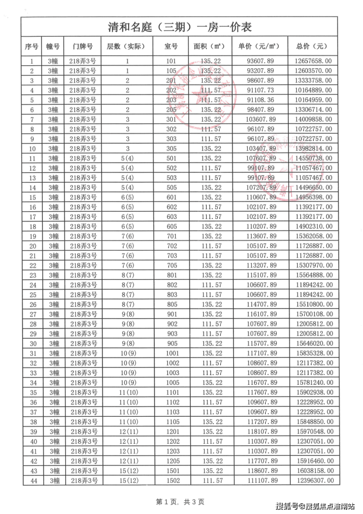 项目一房一价表▼