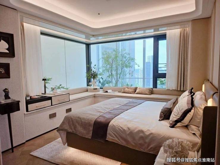 电视背景墙采用卡慕白的石材+皮革造型,弧形吊顶,相当讲究,连空调出风口的形状都打造为海上·清和玺logo山茶花的形状~~三大件为大金(或同等档次)中央空调和地暖,新风系统为百朗(或同等档次),南向阔景阳台,采光视野一级棒!