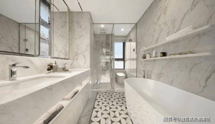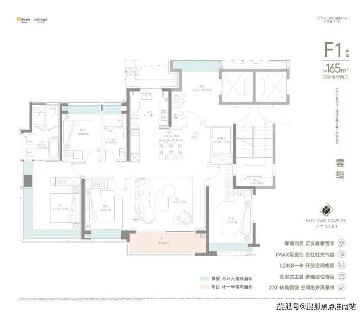 独立电梯厅+四开间朝南+双套房设计+豪华主卧的约270°无柱转角飘窗,整个户型的尺度感拉满