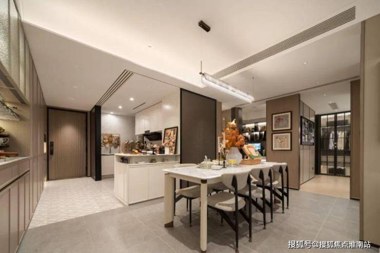 此外,室内还大量运用雅士白大理石、大花白岩板、皇家孔雀岩板、水纹夹丝玻璃、仿洞石岩板、卡拉卡塔白岩板、灰色皮革等定制材质,以华润置地独有的“五奢体系”,彰显着对高品质生活的极致追求