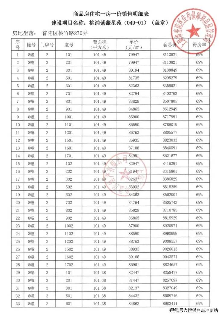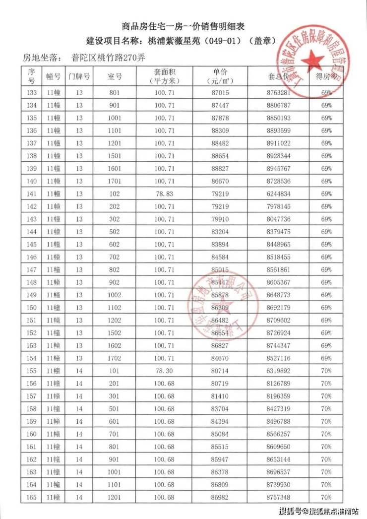 诚然,不可能所有项目都有这样的规格,但我理解的产品主义本就不是以价格来区分,而是态度。紫薇之星的出现再次让市场看到了宝华和东苑对于产品的态度。也正是因为有了这样的项目,让我这样有产品情结的人对这个市场充满希完整一房一价如下: