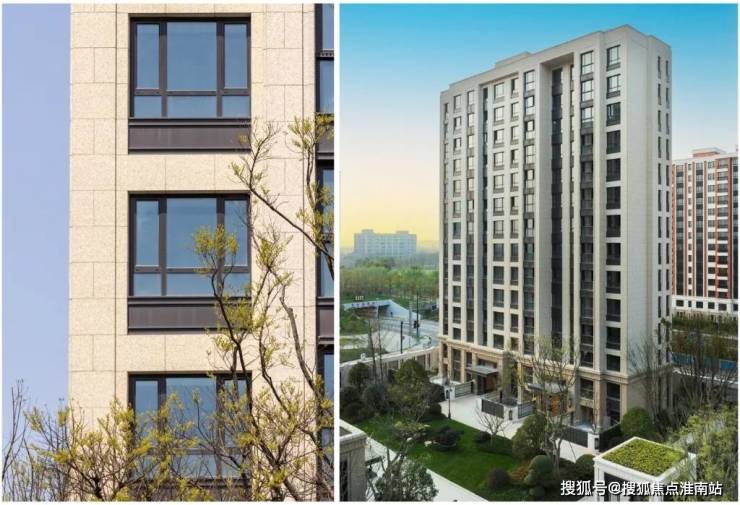 这次项目外立面质感很特别,采用浅色系全石材干挂,巴西都伯斯金麻、宏宇金麻搭配铝板线条,看盘当天天气不错,在阳光照耀下,立面闪烁着温润光泽。