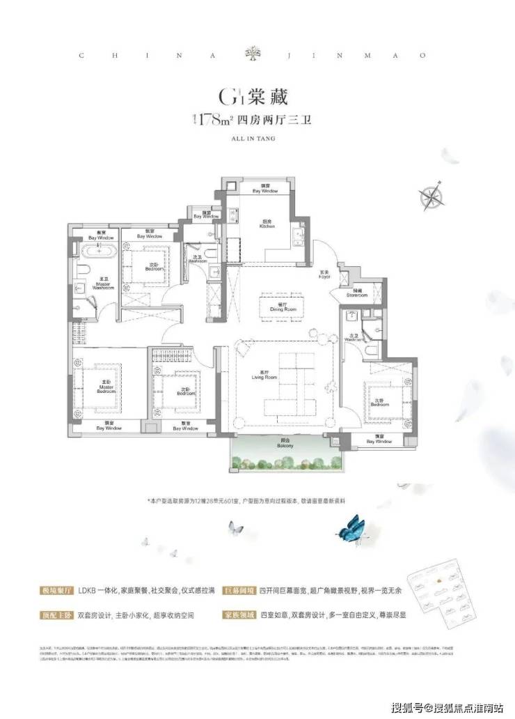 全景舱艺境美宅,标准层约3.1米层高、270度全景飘窗、LDKB一体化、南向跑道阳台、超12米南向全屏开间,无限视野尽收眼底,还有超金喜的满配精装,全上海只有央企金茂才能做得到。