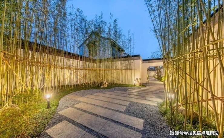 经过中心园林之后,就是通往“家”的江南巷道。白色的墙、翠绿的竹,阳光投射下来与竹林形成影影绰绰的光斑投射在墙面,美不胜收。