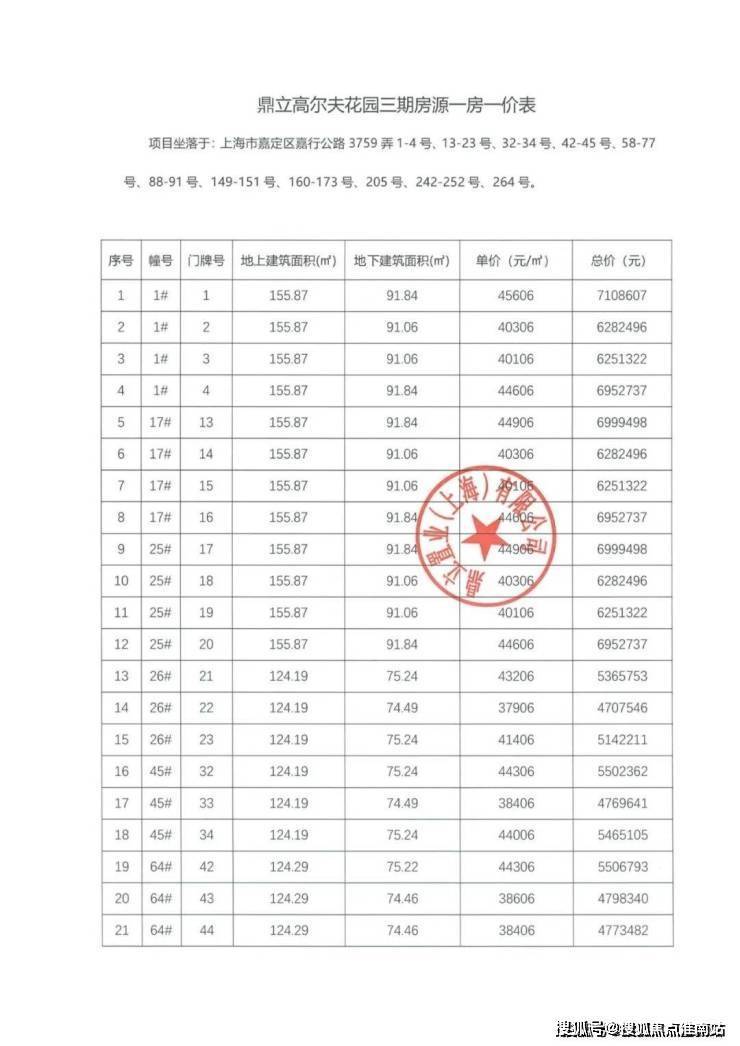 最新一房一价表: