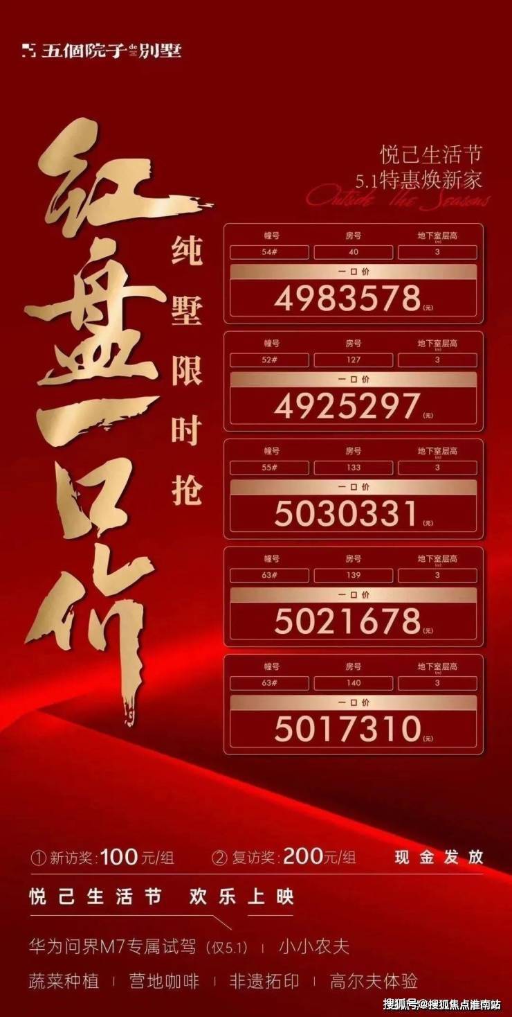 楼盘项目全面介绍(包含楼盘简介,均价,房价,现房,期房,别墅,叠墅,大平层,价格,楼盘地址,户型图,交通规划,备案价,备案名,项目配套,样板间,开盘时间,认筹时间,楼盘详情,售楼处电话,最新消息,最新详情,周边配套,一房一价,最新进展等详情咨询)楼盘详情丨价格丨更多优惠丨机不可失丨欢迎致电丨诚邀品鉴!售楼处位置丨特价房丨工抵房丨剩余房源丨户型图丨最新消息配套设施是反映楼盘生活便利程度的重要因素,包括小区内的运动场所、停车场、公共设施等。物业服务则直接关系到居住者的生活品质,包括安保服务、保洁服务、设备维护等。具体到街道、区域名称,临近交通线路、自驾路线。商业、教育、医疗等配套设施分布,总占地面积、总建筑面积数据,容积率,绿化率,得房率,梯户比,物业费,小高层、洋房、高层、独栋别墅、叠加别墅、联排别墅,总户数、楼层分布,面积范围,均价/总价。首付比例、贷款政策,精装交付,含中央空调、地暖等系统,70年住宅产权,物业公司及资质,预计交付时间或施工进度,当前购房优惠政策 五个院子别墅售楼处电话:400-887-5663✔✔【预约热线】五个院子别墅售楼中心:400-887-5663五个院子别墅售楼处电话/地址☎:4008875663(开发商热线)如有问题欢迎来电咨询,专业一对一热情服务,让您用专业眼光去买房。Five Courtyards Villa Sales Office Phone: 400-887-5663 ✔✔【Appointment Hotline】